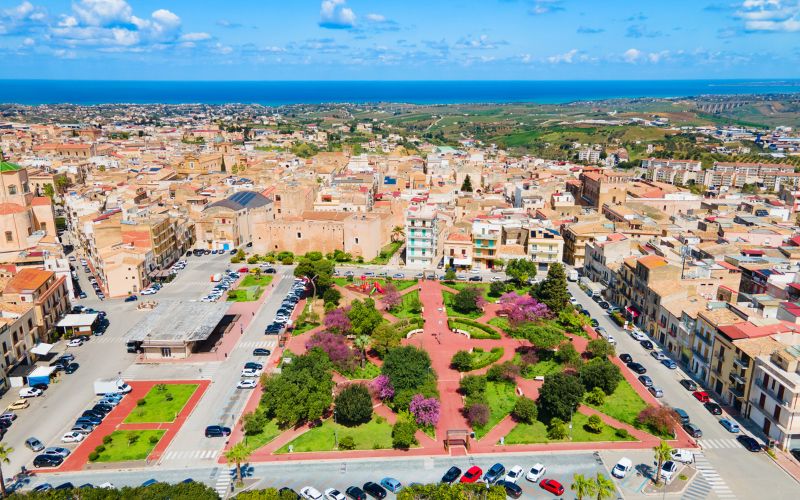 Fields alternate with gentle hills, towns emerge without breaking the horizon, roads invite you to move without haste. This is a luminous, orderly Sicily, deeply connected to its natural rhythm.